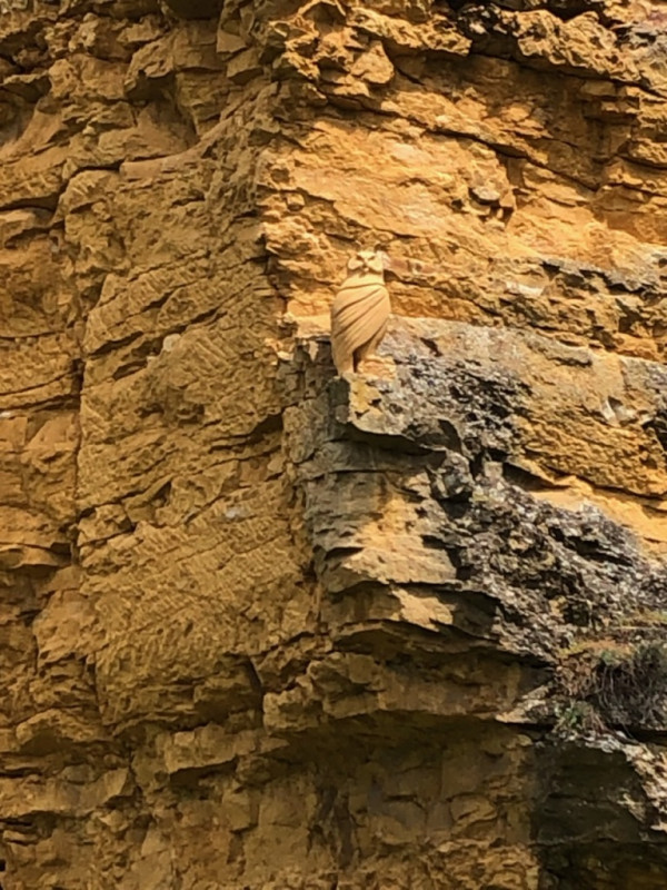 Plusieurs Grands-ducs ont déjà niché dans la carrière, depuis peu un nouvel habitant a pris place sur le front de taille,