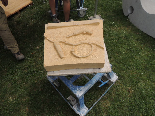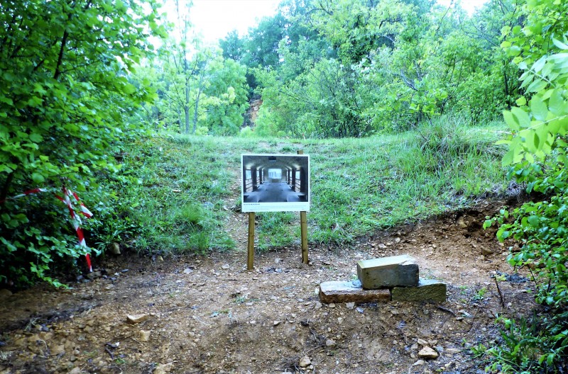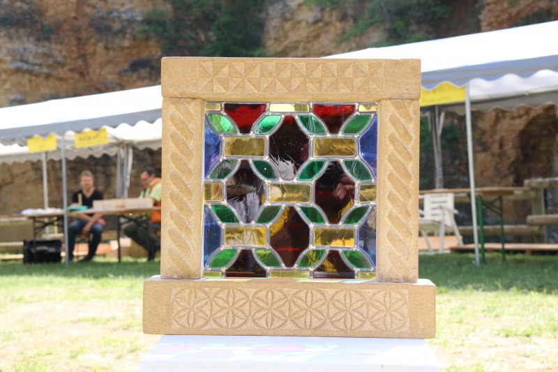 En empruntant le chemin d'accès en direction du front de taille, on pouvait admirer tout au long du sentier l'exposition en Hommage à Jean Claude LOMBOROT, graveur lapidaire,