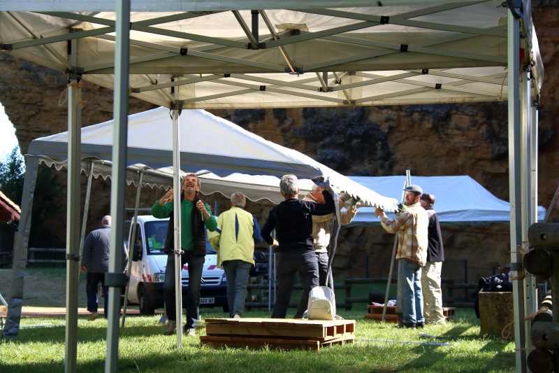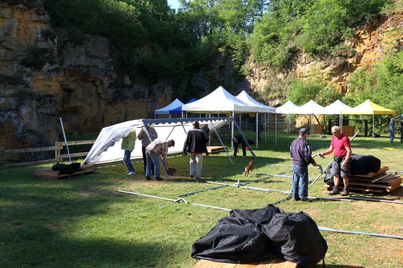Le vendredi, les adhérents de l'association et une soixantaine de bénévoles,( que nous remercions vivement de leur aide), ont aménagé le site et installé les stands ce qui représente une grande activité mais toujours dans la joie et la bonne humeur.