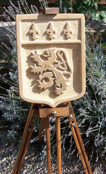 Blason de la ville de Lyon, bas relief en pierre dorée |