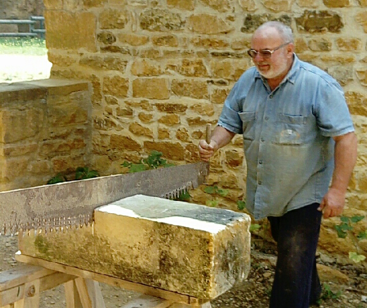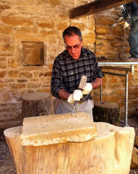"je travaille principalement la pierre dorée, souvent en bas relief, car, malgré de petits défauts, cette pierre garde encore beaucoup d'attraits" |