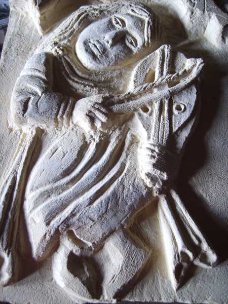![]() Troubadour, d'après une sculpture ornant un chapiteau de l'ancienne abbaye de Savigny (69)