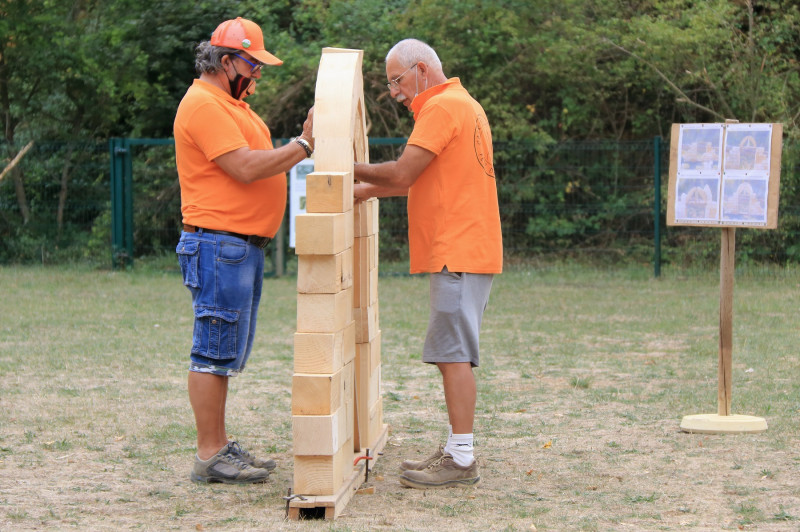 Le Président Alain THIEBAULD et Patrick devant le jeu de constrcuction de l'arche en bois. Pour les petits & les grands ! |